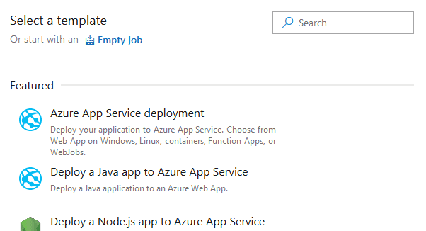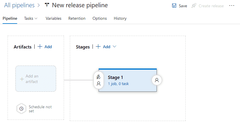 While that's running open the Releases page in DevOps and click New release pipeline. On the template selection screen click the Empty job link at the top.