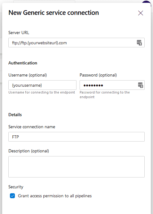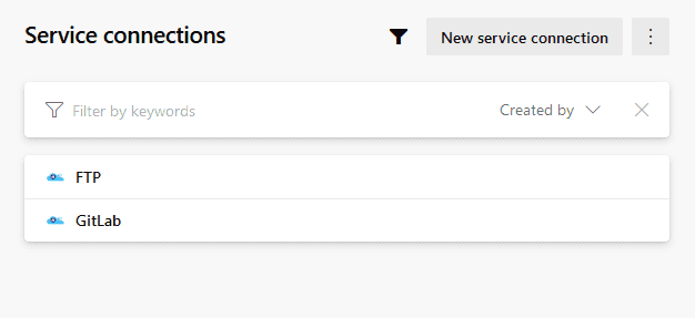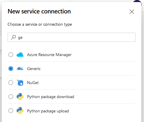 Now we want to create another connection, this time to the FTP site. Click New service connection again, this time choosing Generic.