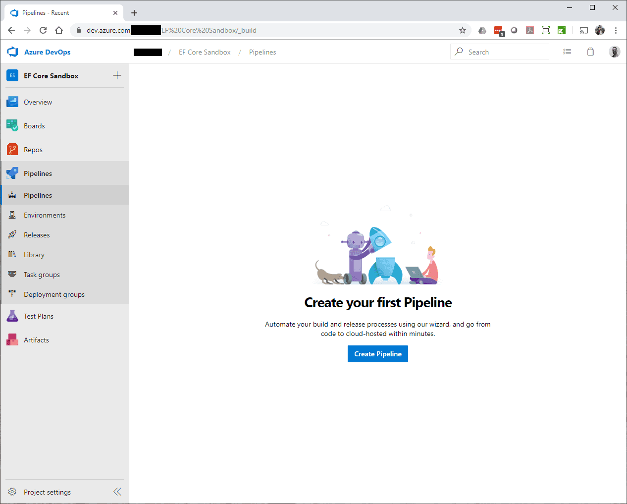 In your Azure DevOps portal, open the project and then select Pipelines in the left hand menu.