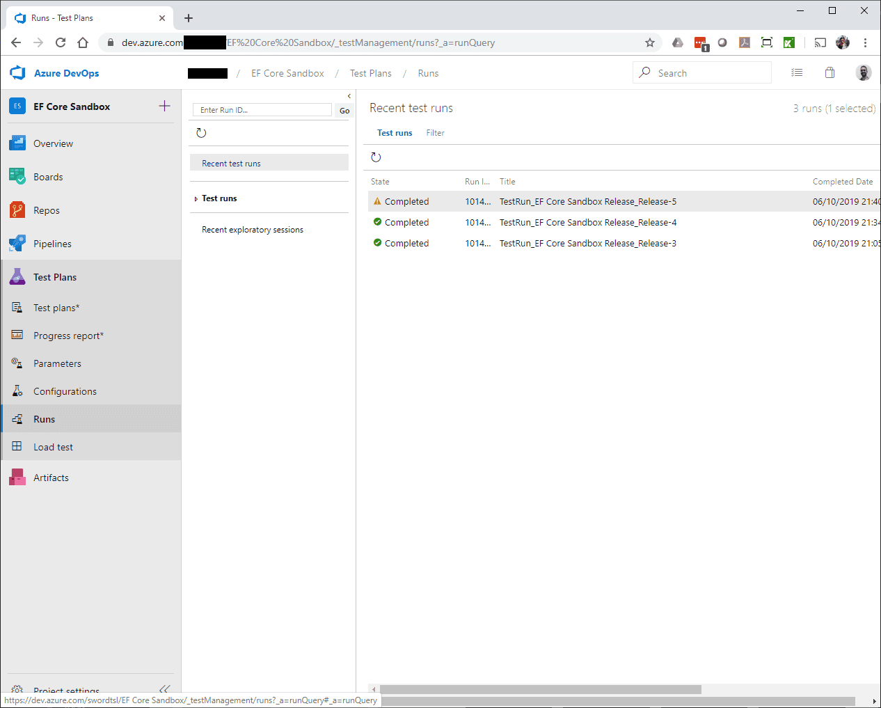 What about the screenshot though. If you click Tests Plans in the left hand menu and then Runs youll see the list of completed test runs – the latest failed one should be at the top.